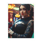 The composition skillfully balances elements of fashion, leisure, and entertainment, presenting the subject with subtle satisfaction evident in her expression. The artist employs brilliant color palettes to convey the electric atmosphere of gaming floors, where lights flash and excitement fills the air. This particular piece resonates with viewers who appreciate both the aesthetic beauty of the artwork and the familiar emotions associated with gaming experiences.