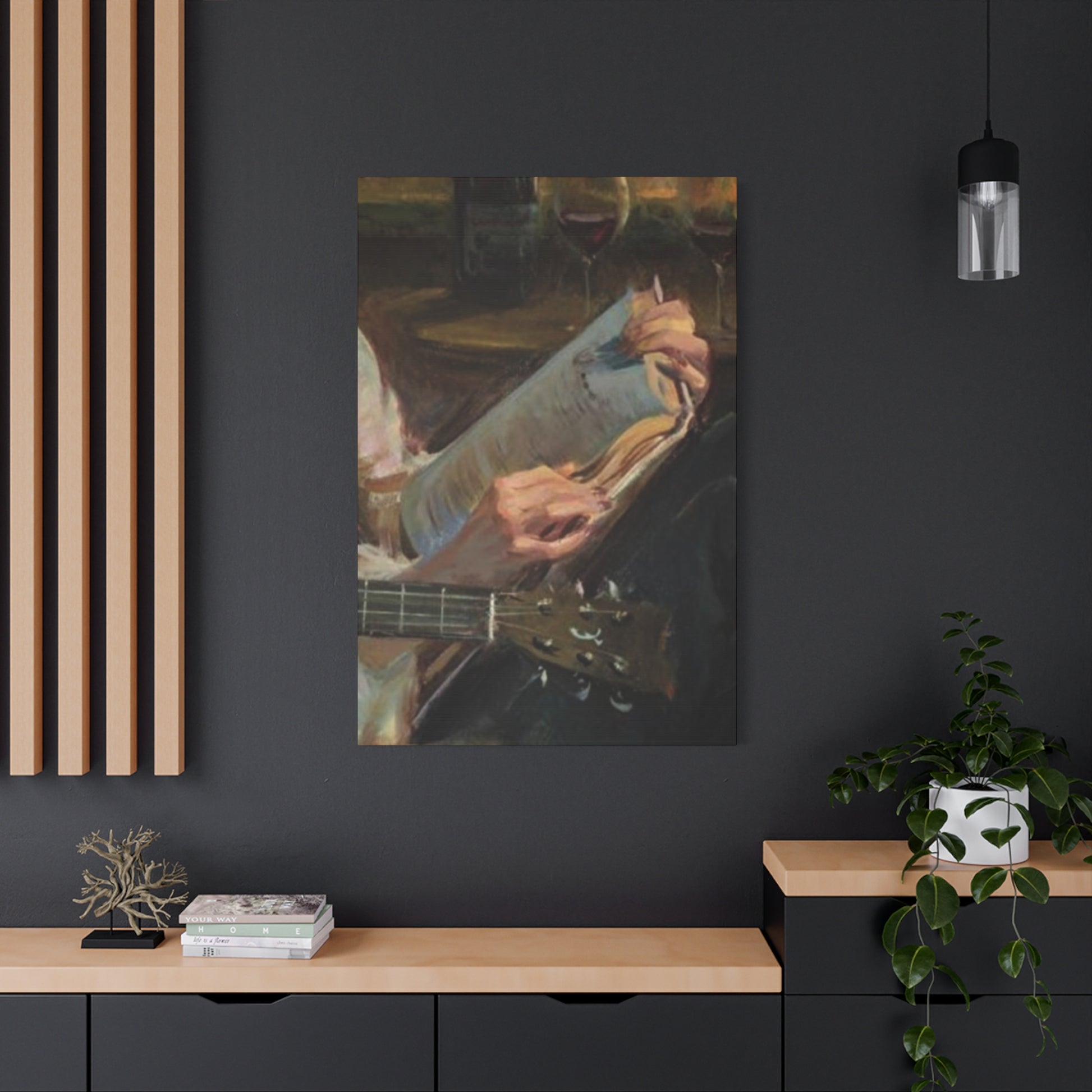 Integrating Books And Guitar Wall Art into Broader Interior Design Schemes