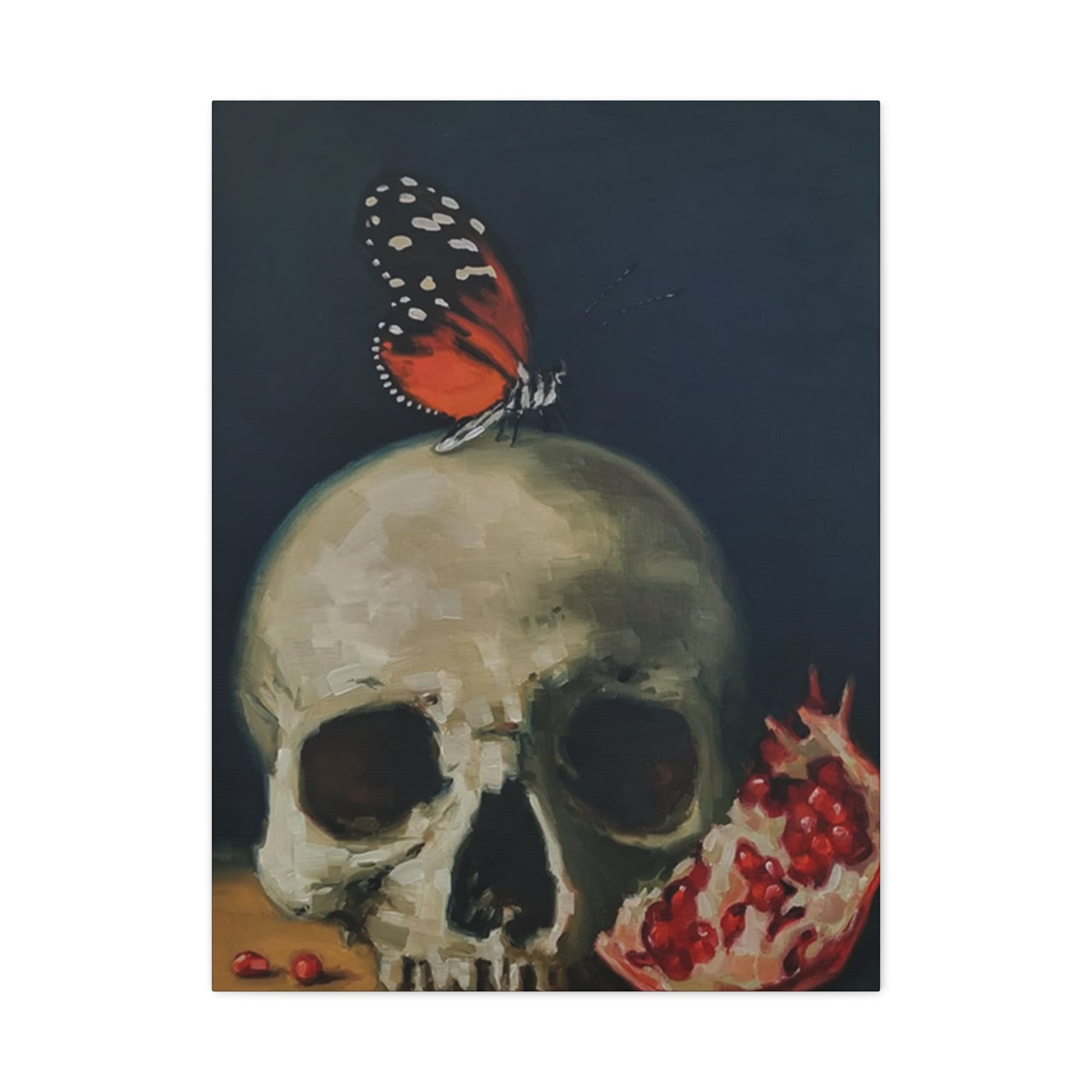 Contemporary Butterfly On Skull Wall Art manifests across an expansive range of materials, each imparting distinctive aesthetic and textural qualities to the finished composition. Canvas remains a traditional choice, offering excellent compatibility with acrylic, oil, and mixed-media applications. Artists frequently utilize canvas to explore detailed illustrative approaches, allowing for precise rendering of anatomical elements and atmospheric effects through layered applications of pigment and various painting mediums.