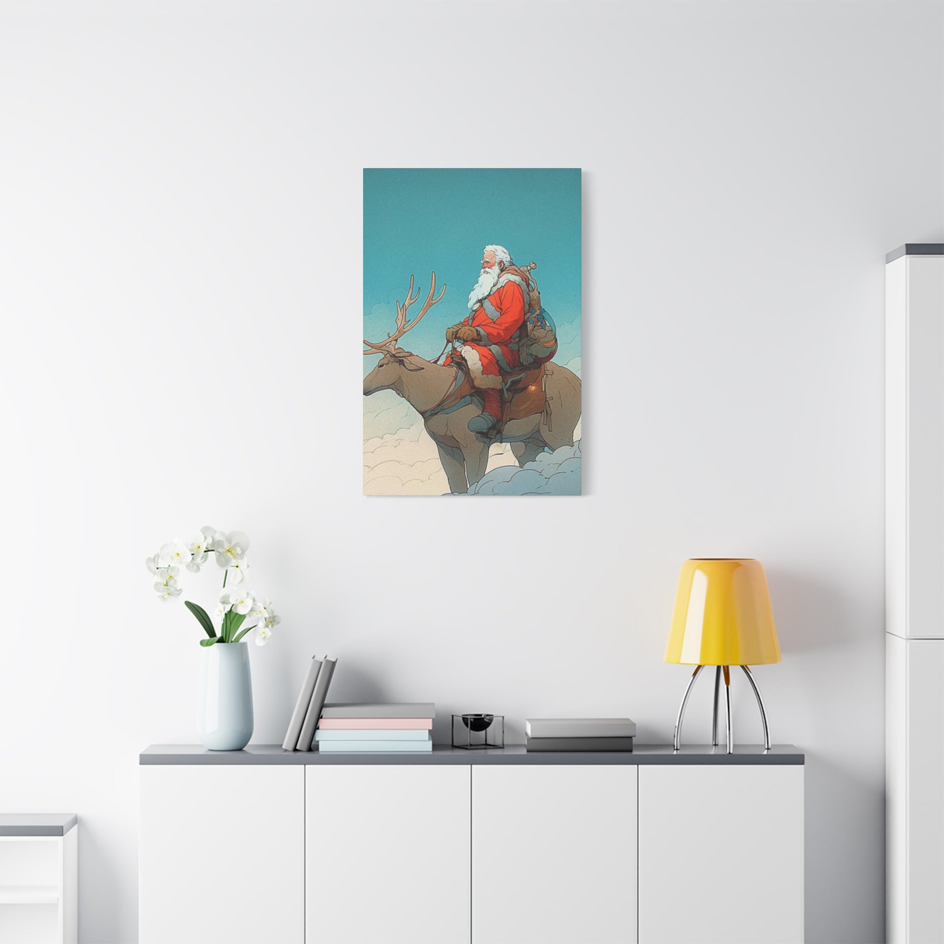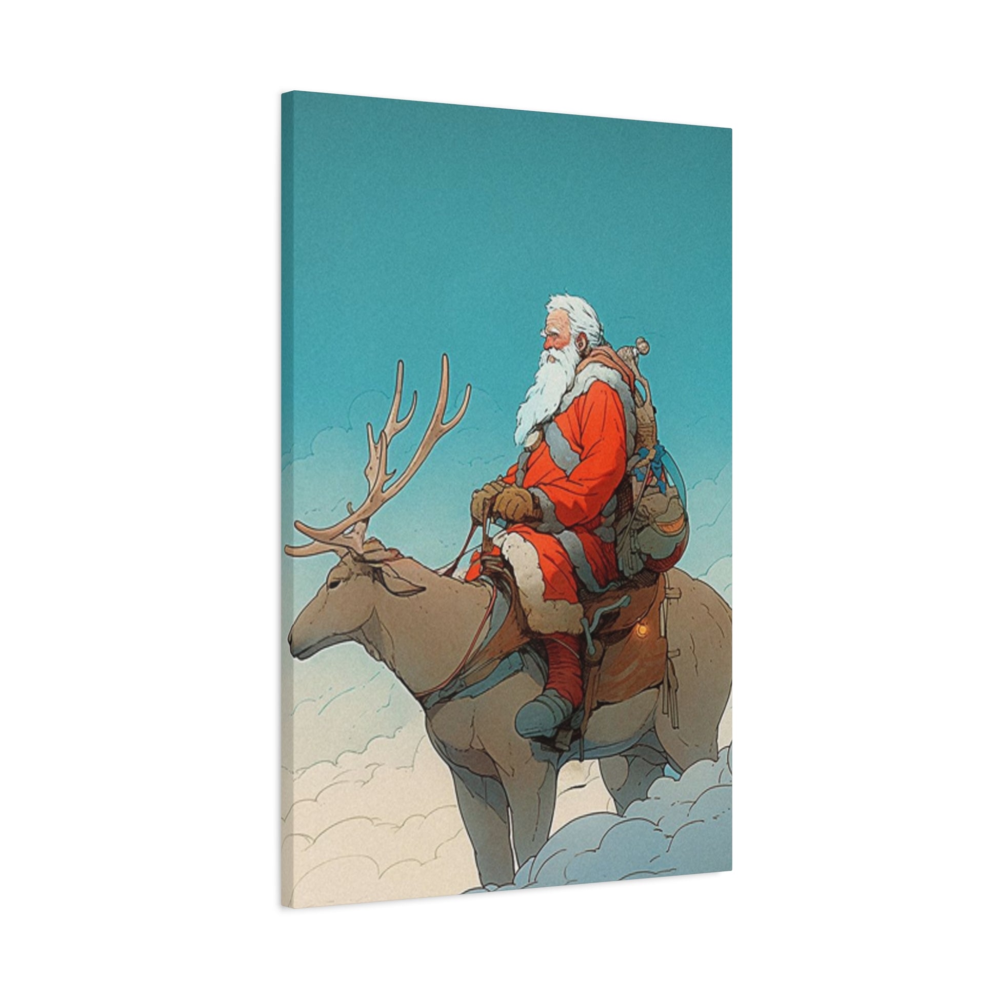 Santa Claus On A Reindeer Wall Art & Canvas Prints